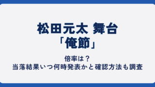 エンタメ 松田元太舞台「俺節」2026倍率は?当落結果いつ何時発表かと確認方法も調査