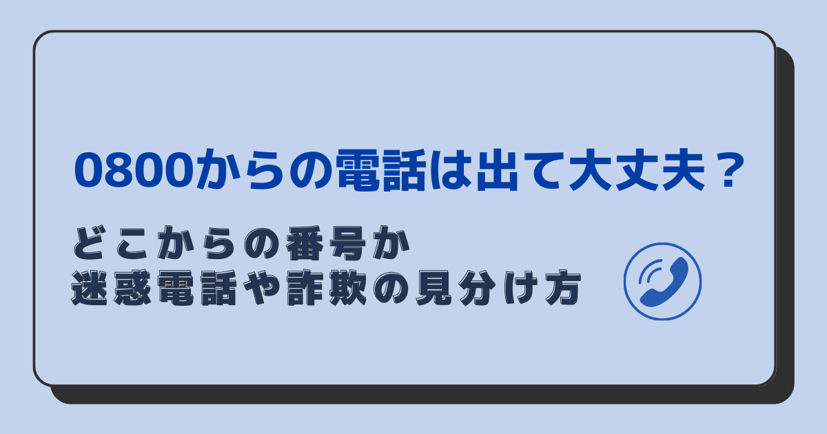 「0800から電話が来たけど、どこからの番号?出ても大丈夫?通話料は?迷惑じゃない?」