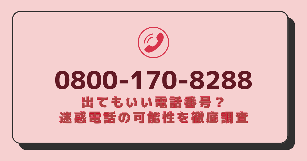この記事では、口コミや実例をもとに「0800-170-8288」がどんな電話なのか、安全性をわかりやすくまとめました。