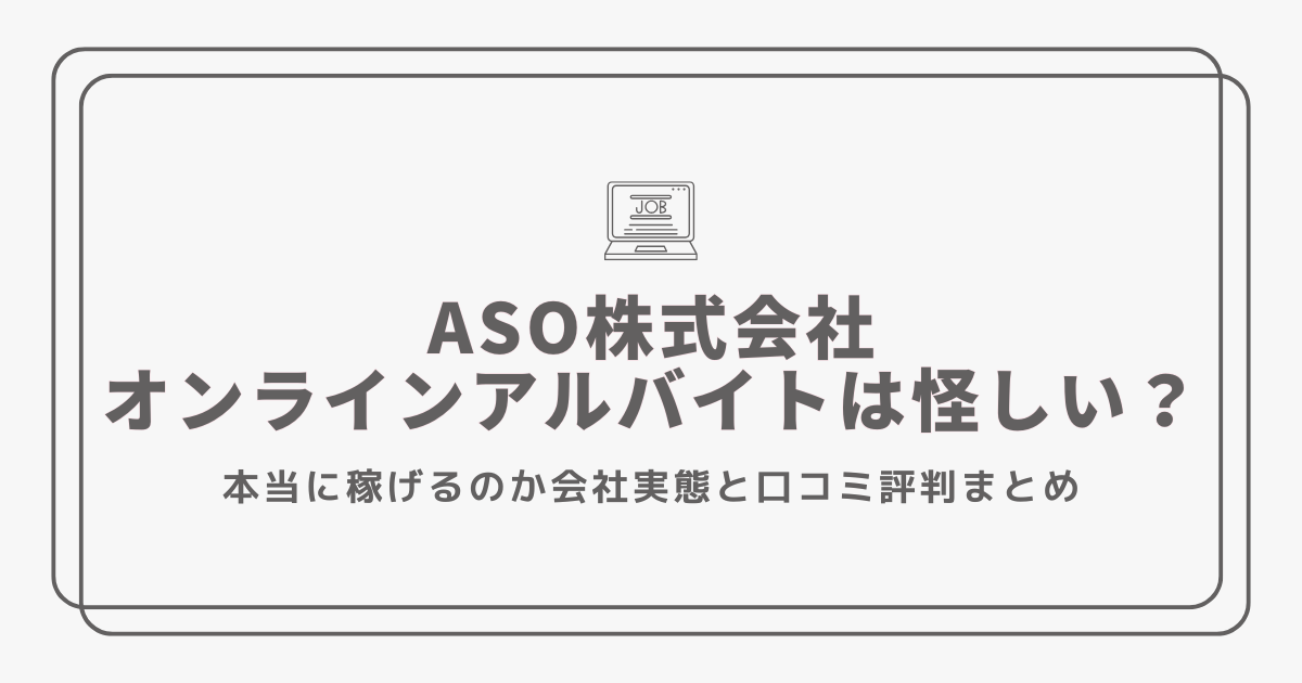 この記事では、ASO株式会社オンラインアルバイトは怪しいのか、本当に稼げるのか、会社実態や口コミ評判までわかりやすくまとめました。