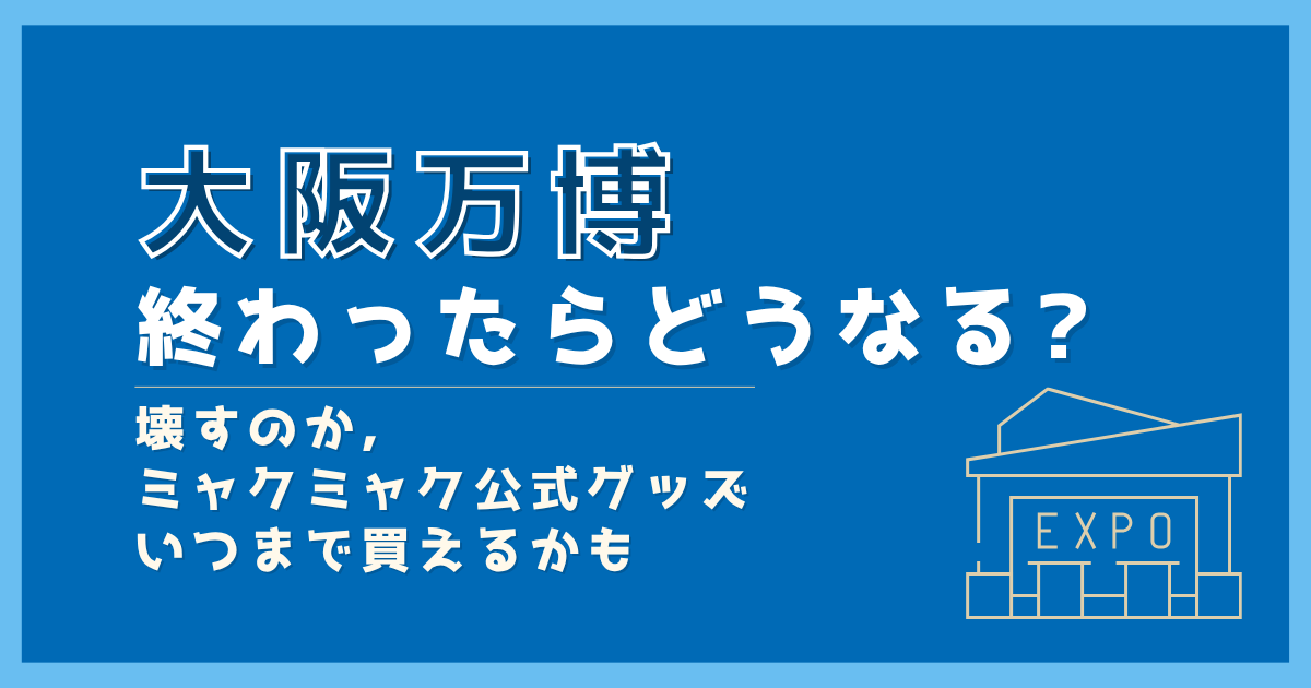 でもふと、「万博が終わったらあの会場はどうなるの?」「ミャクミャクのグッズは、閉幕後も買えるのかな?」と気になる方も多いのではないでしょうか。