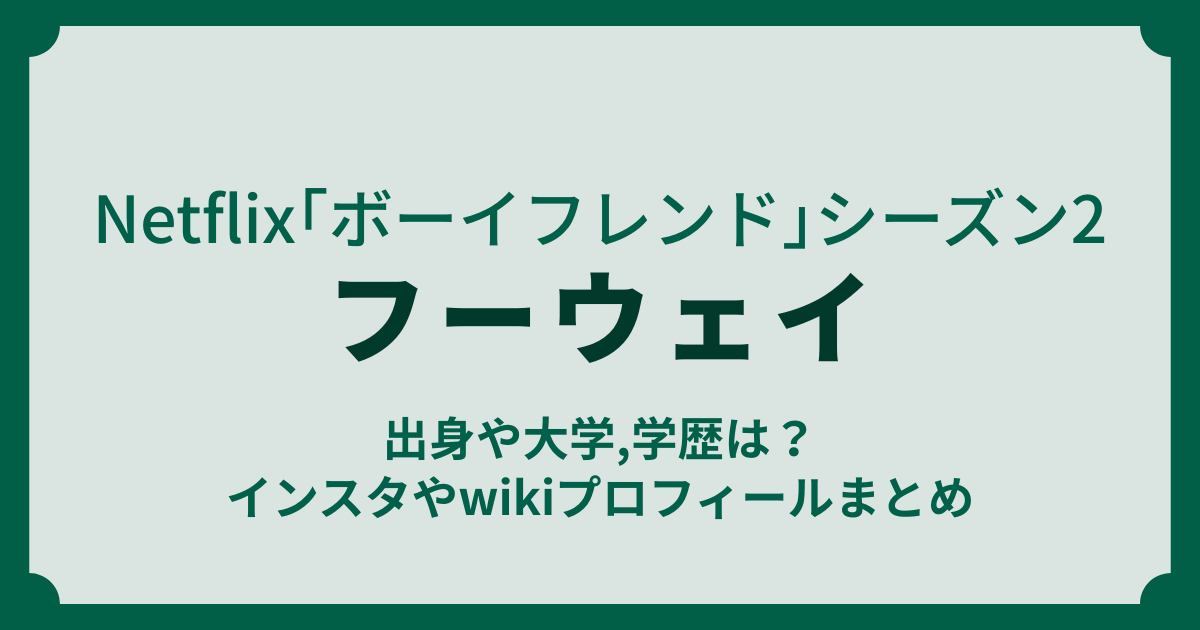 最新情報はインスタ(@myhuwei)をチェックしつつ、Netflixで彼の恋の行方を一緒に見守っていきましょう。