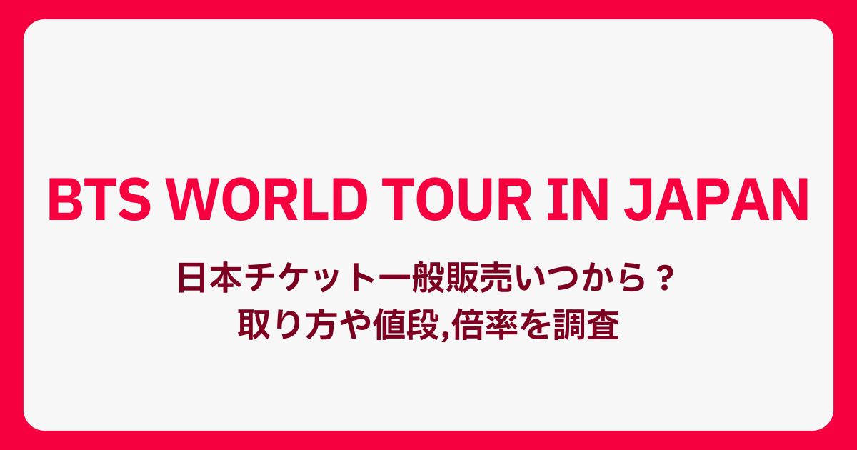 そこでこの記事では、BTSワールドツアー2026日本公演について「一般販売はいつからなのか」「チケットの取り方はどうなるのか」「値段や倍率はどれくらいなのか」を知りたい方へ向けて、最新情報と予想を整理して解説します。