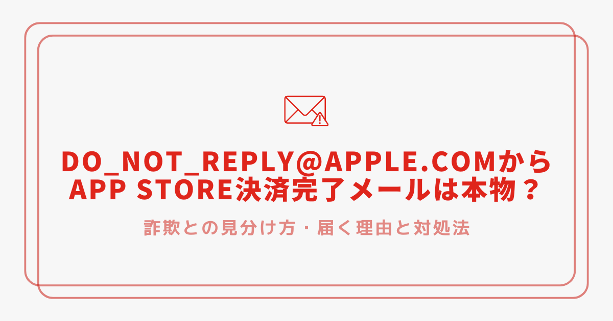 この記事では、do_not_reply@apple.comから届くApp Store決済完了メールは本物なのか、詐欺との見分け方、なぜ届くのか原因、正しい対処法までわかりやすく解説します。
