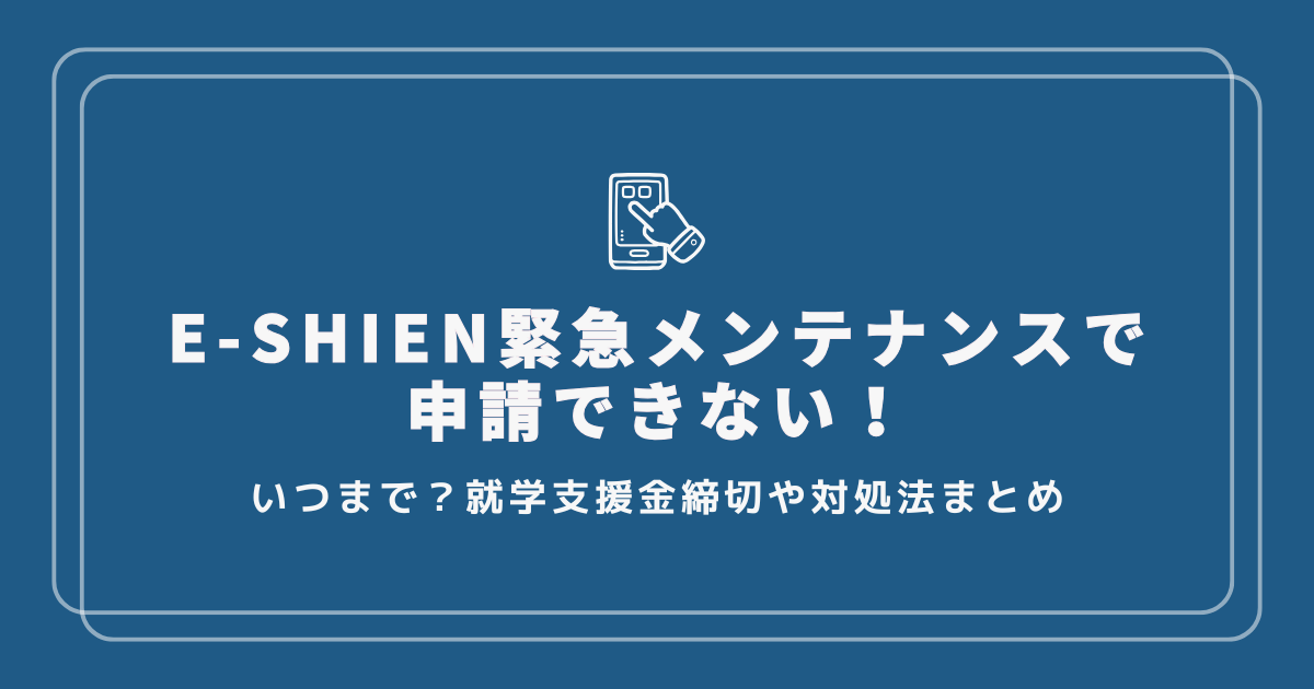 e-shien(高等学校等就学支援金オンライン申請システム)が突然の緊急メンテナンスに入り、「申請できない…」「締切が近いのにどうしよう」と焦っている保護者の方も多いのではないでしょうか。