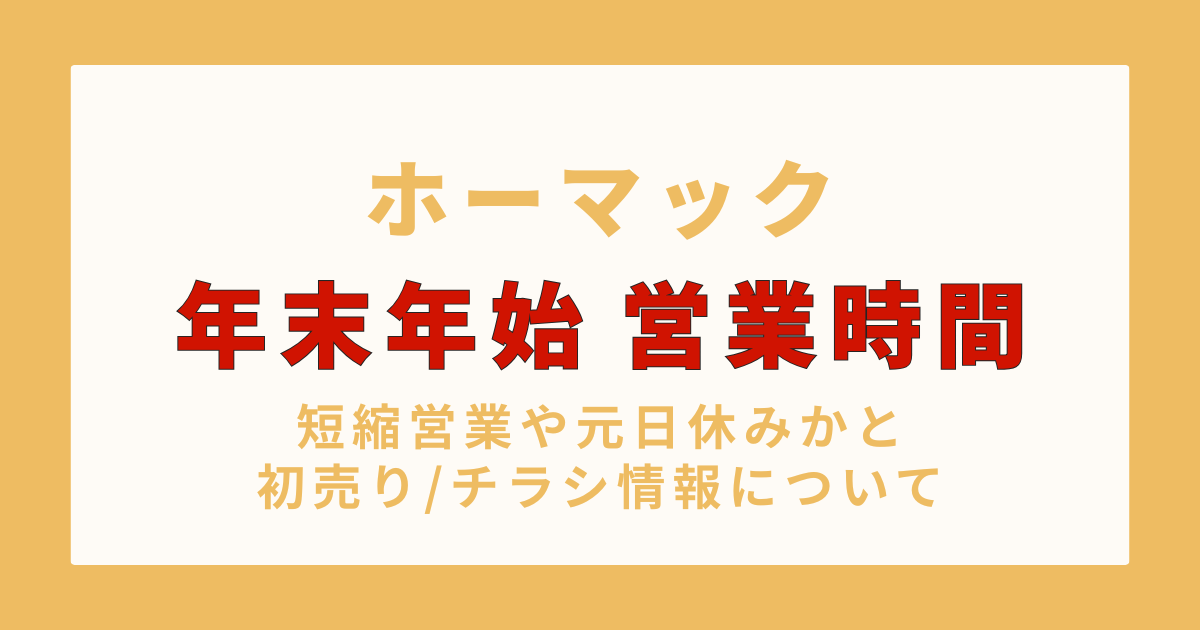 → ホームセンター以外の飲食店・スーパーなど年末年始2025-2026営業時間まとめはこちら
