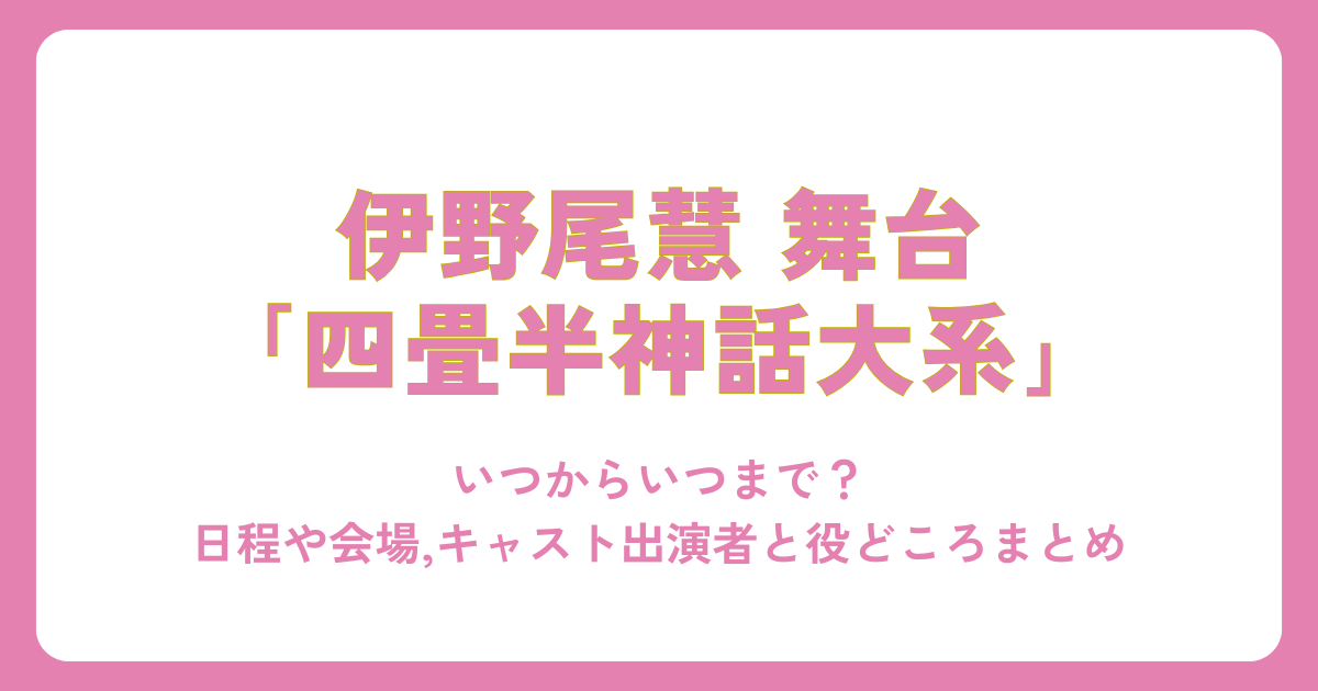 伊野尾慧さん主演の舞台「四畳半神話大系」が発表され、「いつからいつまで?」「日程は?」「キャストは誰?」と気になっている方も多いのではないでしょうか。