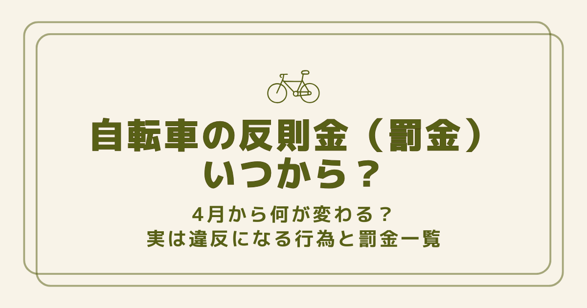 そこでこの記事では、自転車の反則金がいつから始まるのか、4月から何が変わるのかをわかりやすく解説しつつ、実は違反になる行為や罰金の一覧、注意点までまとめてご紹介します。