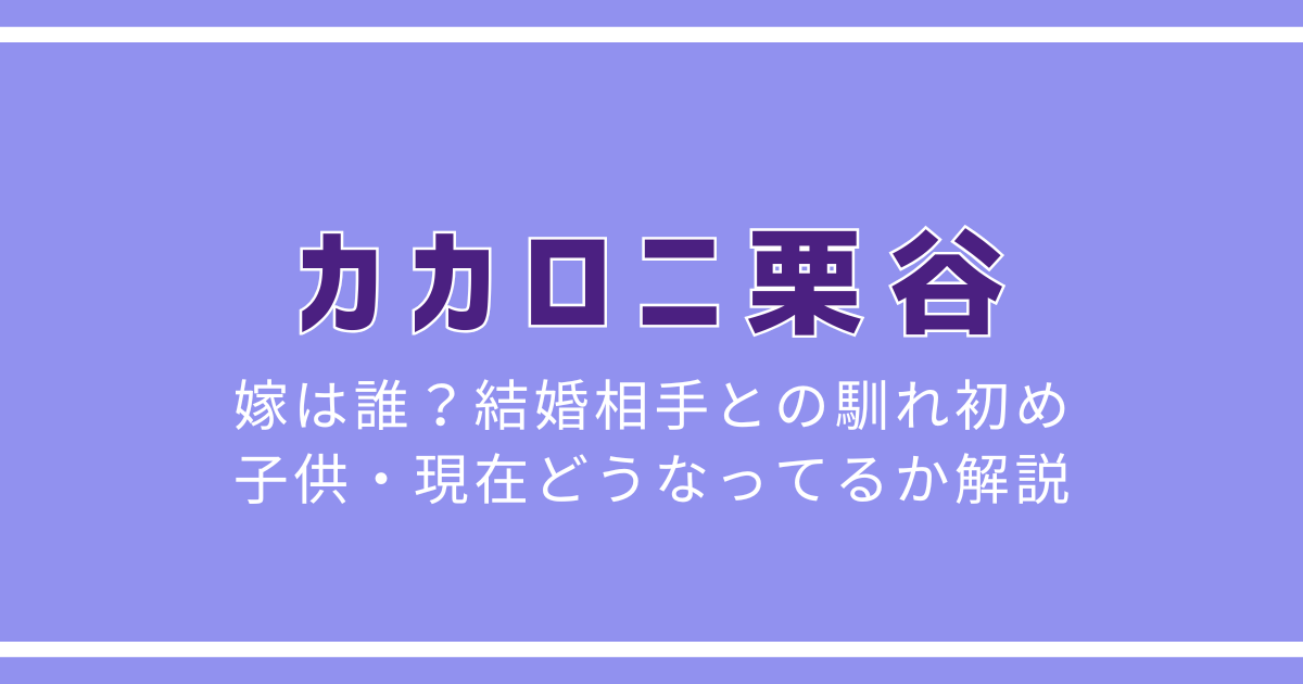この記事では、カカロニ栗谷さんの結婚相手(嫁)について、馴れ初めや家族情報、そして現在の状況までわかりやすくまとめていきます。