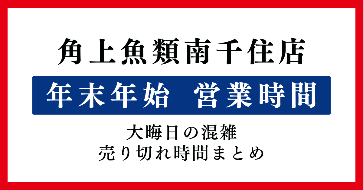 この記事では、角上魚類南千住店の年末年始2025-2026の営業時間をはじめ、大晦日の混雑状況、売り切れやすい商品と時間帯、スムーズに買い物するための攻略ポイントまでを分かりやすくまとめています。