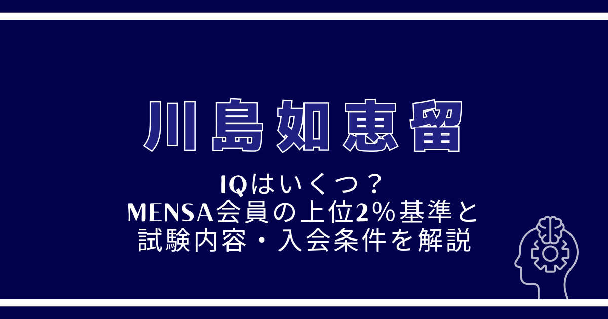 川島如恵留さんのIQは非公表ですが、MENSA上位2%基準(目安IQ130以上)を満たしています。試験は図形・論理中心で、合格後に正式入会となります。