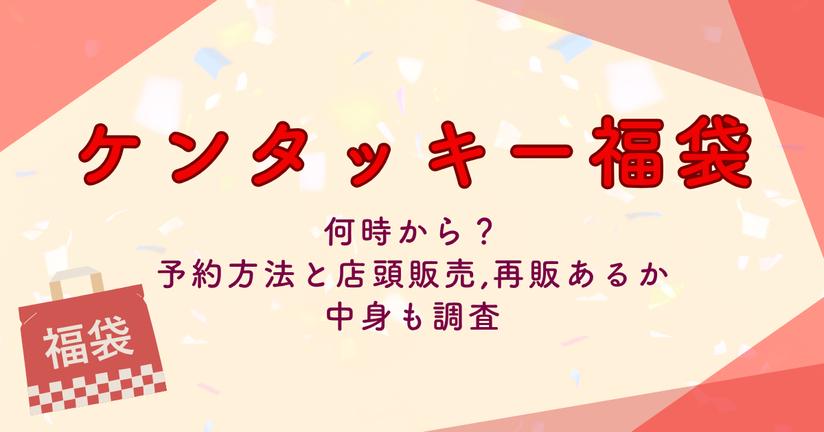 この記事では、ケンタッキー福袋2026の発売日・予約開始時間・販売店舗・再販情報・中身の内容まで、過去の傾向をもとに徹底解説します。