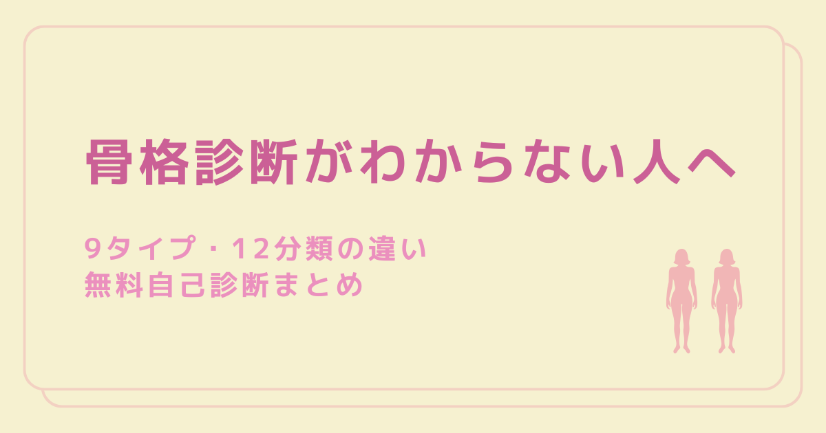 この記事では、骨格診断がわからなくなる理由を整理しながら、9タイプ・12分類の違いと、初心者でも試しやすい無料自己診断の考え方を、できるだけわかりやすく解説していきます。