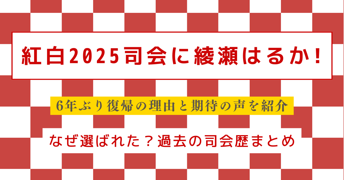 この記事では、紅白歌合戦2025の司会発表から起用理由過去の出演歴、さらにSNSの反応まで、綾瀬はるかさんに注目してわかりやすくまとめていきます。