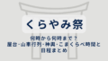 「そもそも、くらやみ祭は何日に何の行事があるの?」という方は、屋台・山車行列・神輿・こまくらべの時間までまとめた