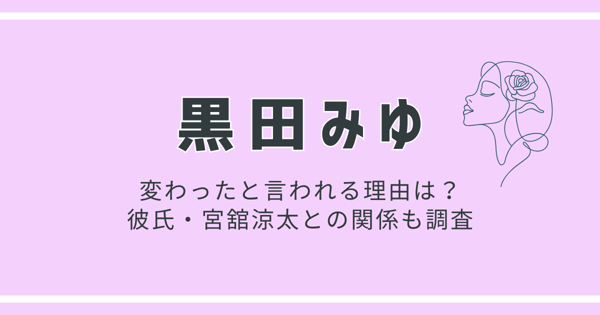 黒田みゆアナが「変わった」と言われる理由は、見た目の垢抜けや仕事での飛躍に加え、宮舘涼太さんとの熱愛報道が重なったことが大きいと考えられます。