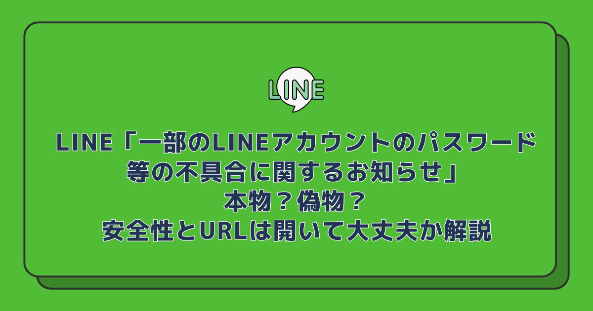 LINE「一部のLINEアカウントのパスワード等の不具合に関するお知らせ」は、現時点では公式通知の可能性が高い内容です。