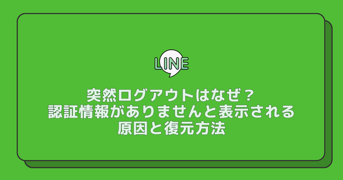 LINEが突然ログアウトされて「認証情報がありません」と表示される原因は、LINEの不具合・ログイン方法の違い・アプリデータエラーなどが考えられます。多くの場合はアカウントが消えたわけではなく、正しいログイン方法で再ログインすれば復元できる可能性があります。