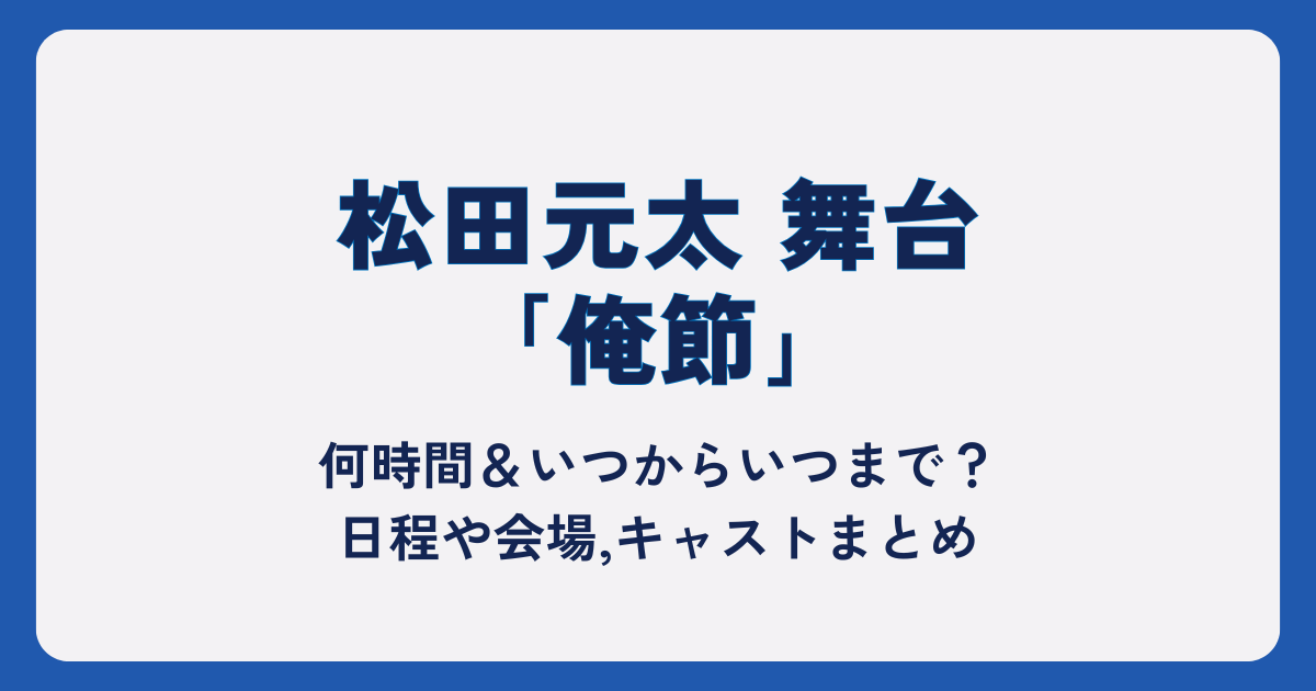 松田元太さん主演の舞台「俺節」2026は、東京・福岡・大阪の3都市で上演されます。