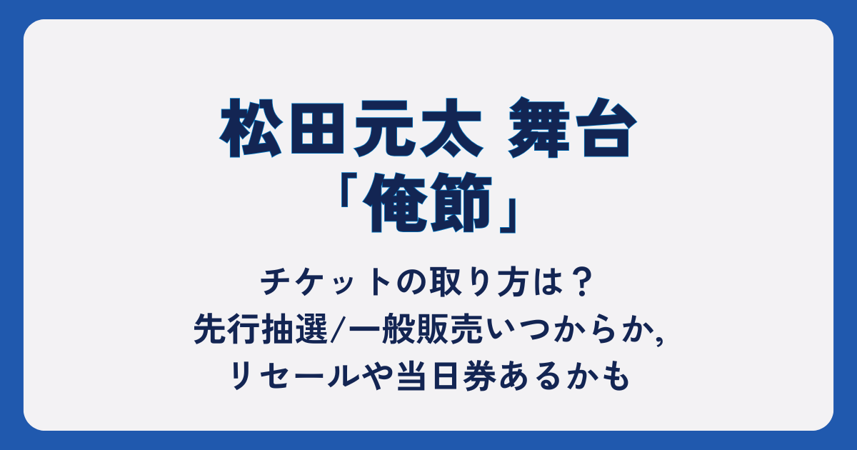 松田元太舞台「俺節」2026チケット取り方は?先行抽選/一般販売いつからか,リセールや当日券あるかも