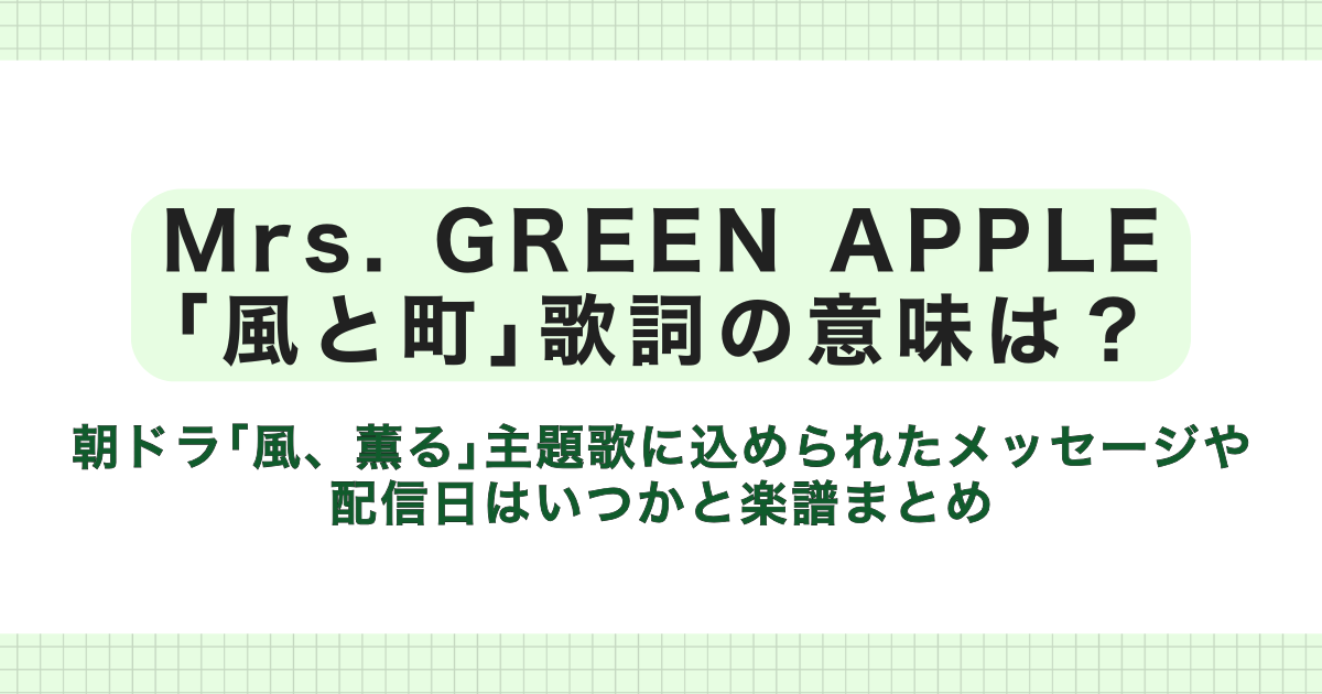 ミセスグリーンアップル「風と町」歌詞の意味&配信日いつ?朝ドラ「風、薫る」主題歌に込められたメッセージや楽譜まとめ