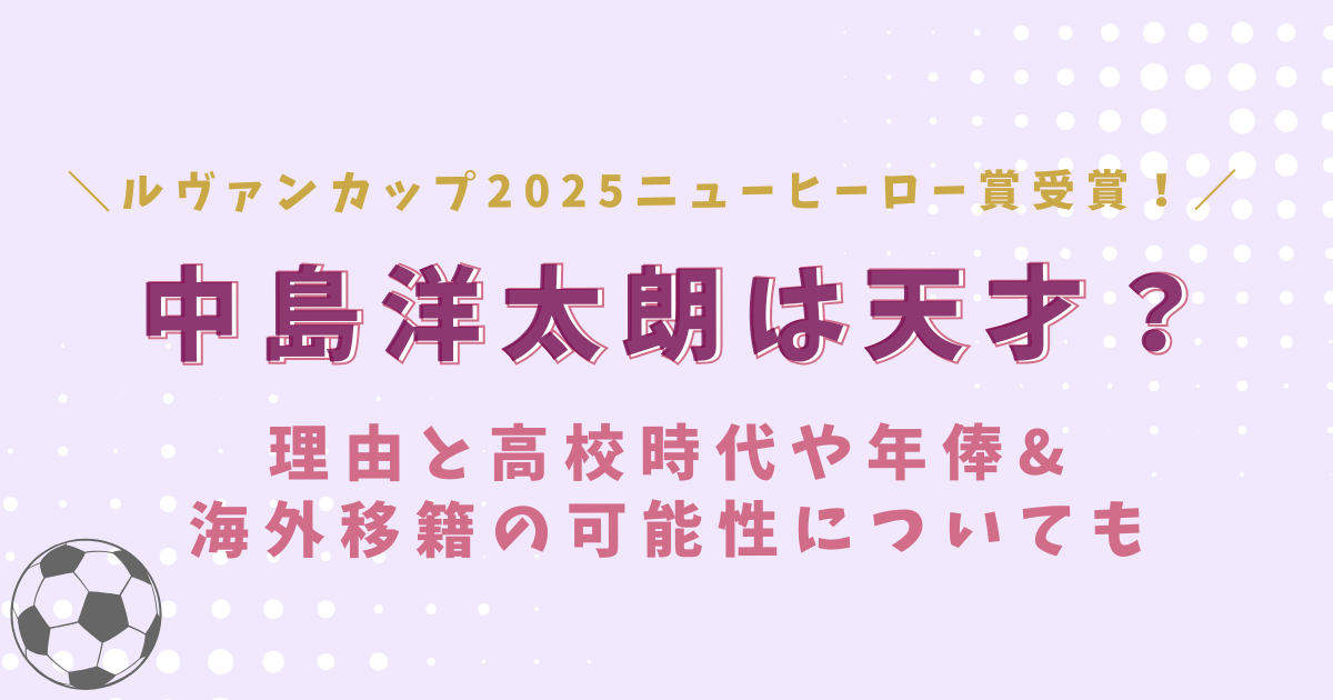 これらの事実からも、中島洋太朗選手が“天才”と呼ばれるのは決して誇張ではないことが分かります。