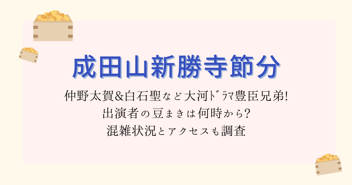 この記事では、「成田山新勝寺節分2026の豆まきは何時から?」「仲野太賀さん・白石聖さんはどの回に出そう?」という“時間軸”を中心に、混雑・アクセスまでまとめて解説します。