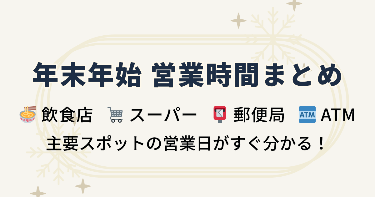 「元日は開いてる?」「スーパーは何時まで?」「ATMは使えるの?」など、毎年調べ直すのが大変という声も多いですよね。