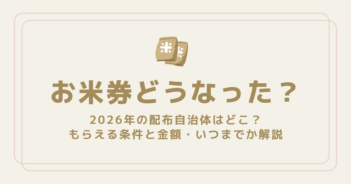 結論から言うと、2026年のお米券は全国一律配布ではなく自治体ごとに実施の有無や金額が異なり、使用期限は2026年9月30日までと決まっています。