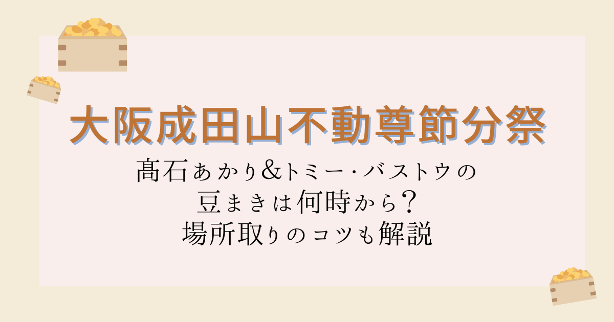 大阪成田山不動尊節分祭2026は、朝ドラ公式発表により、豆まきは《午前11時頃から》行われる予定です。
