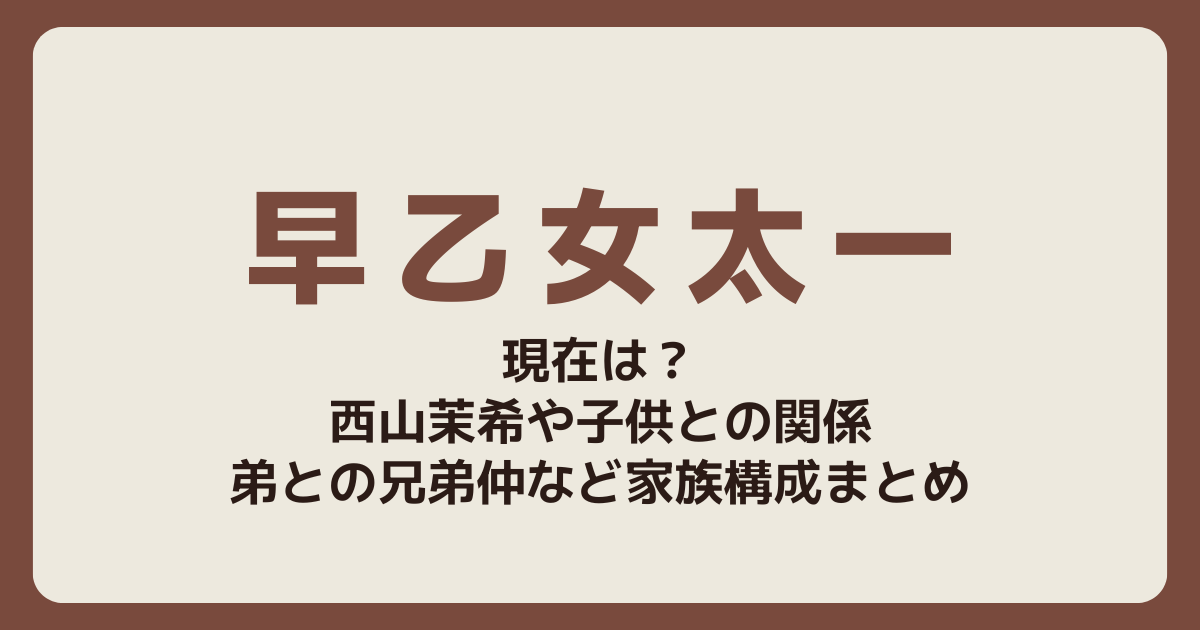 早乙女太一2026年現在は?西山茉希や子供との関係,弟との兄弟仲など家族構成まとめ