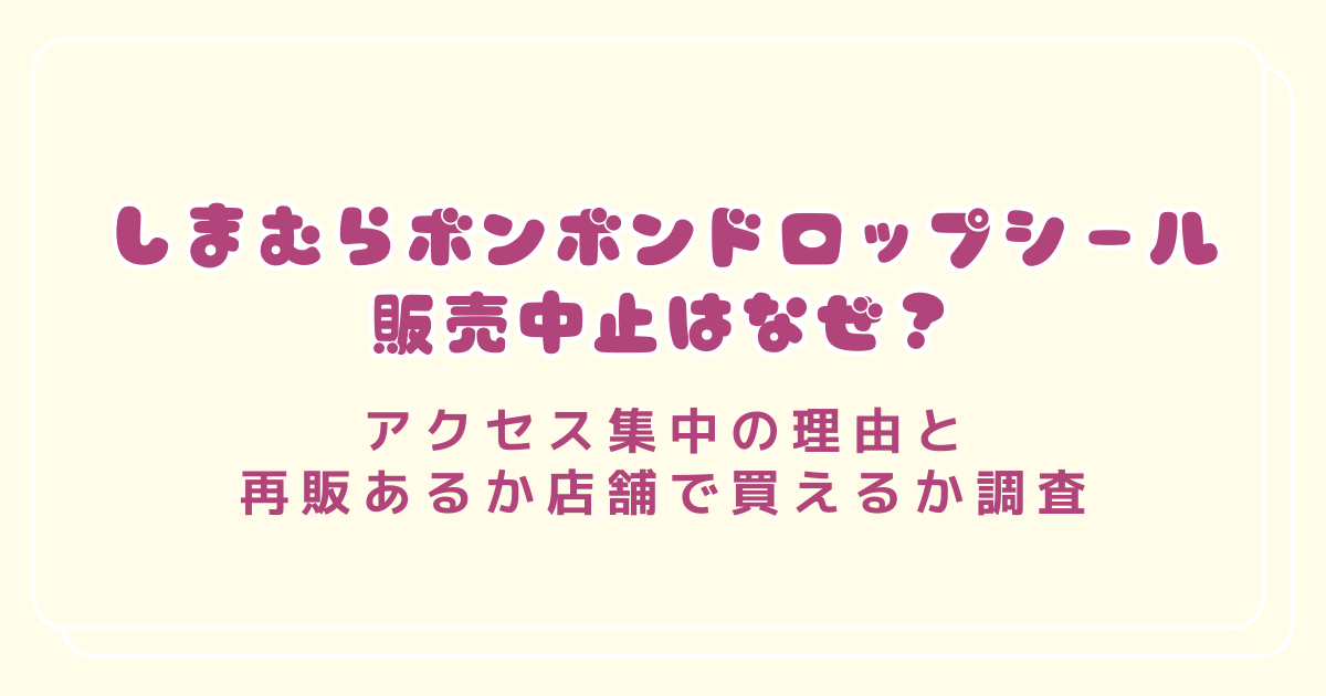 この記事では、しまむらでボンボンドロップシールが販売中止になった理由や、アクセスが集中した背景、再販の可能性、店舗で買えるのかについて、現時点の情報をもとにわかりやすくまとめます。