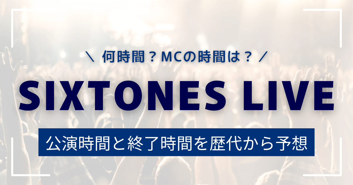この記事では、SixTONESライブ2026が何時間になるのか、MC時間の平均や最長ケース、歴代ライブの時間傾向をもとに、公演時間と終了時間を詳しく予想します。