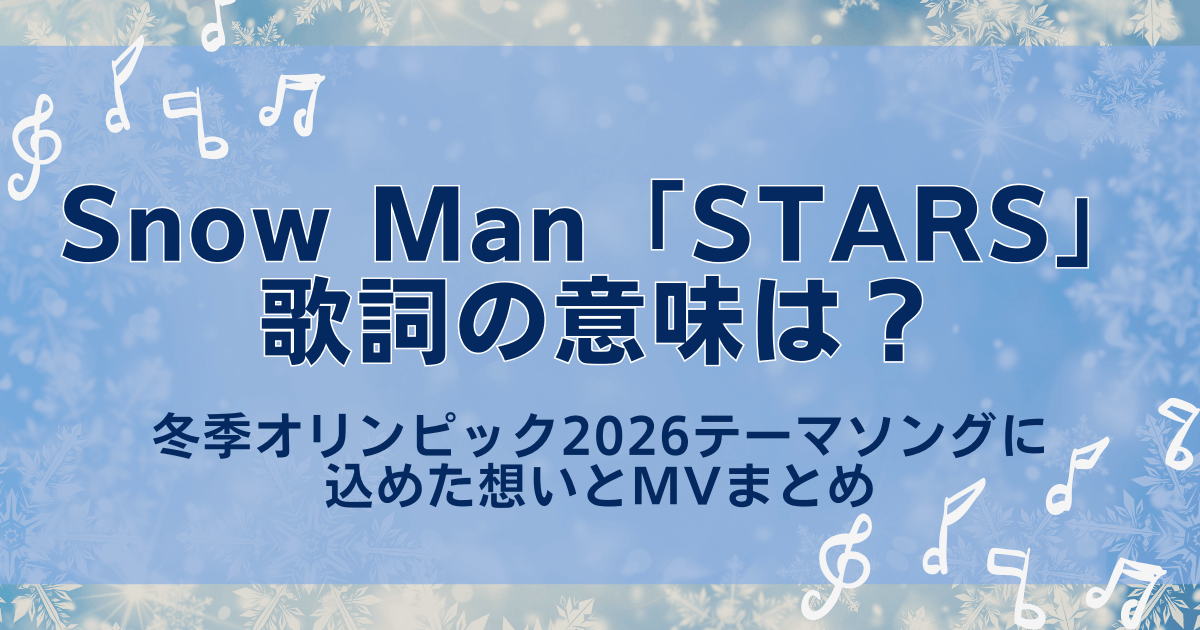 Snow Manの「STARS」は、冬季オリンピック2026のテーマソングとして制作された楽曲でありながら、アスリートだけでなく、日々を懸命に生きるすべての人に寄り添う応援歌です。