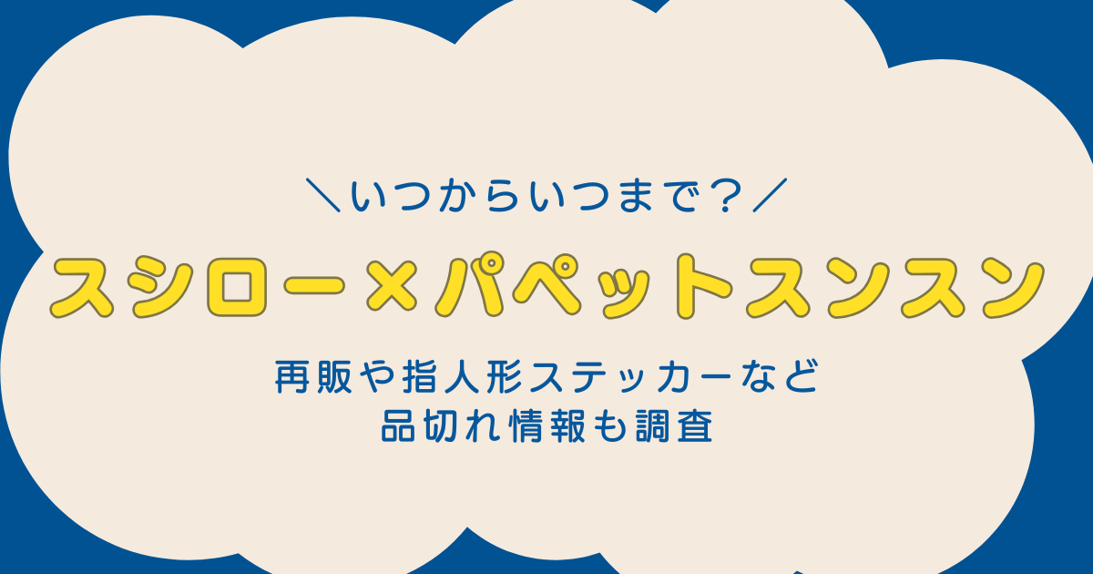 この記事では、スシロー×パペットスンスンコラボ第二弾の開催期間・限定メニュー・グッズ詳細・品切れ予想・再販可能性まで、わかりやすくまとめます。