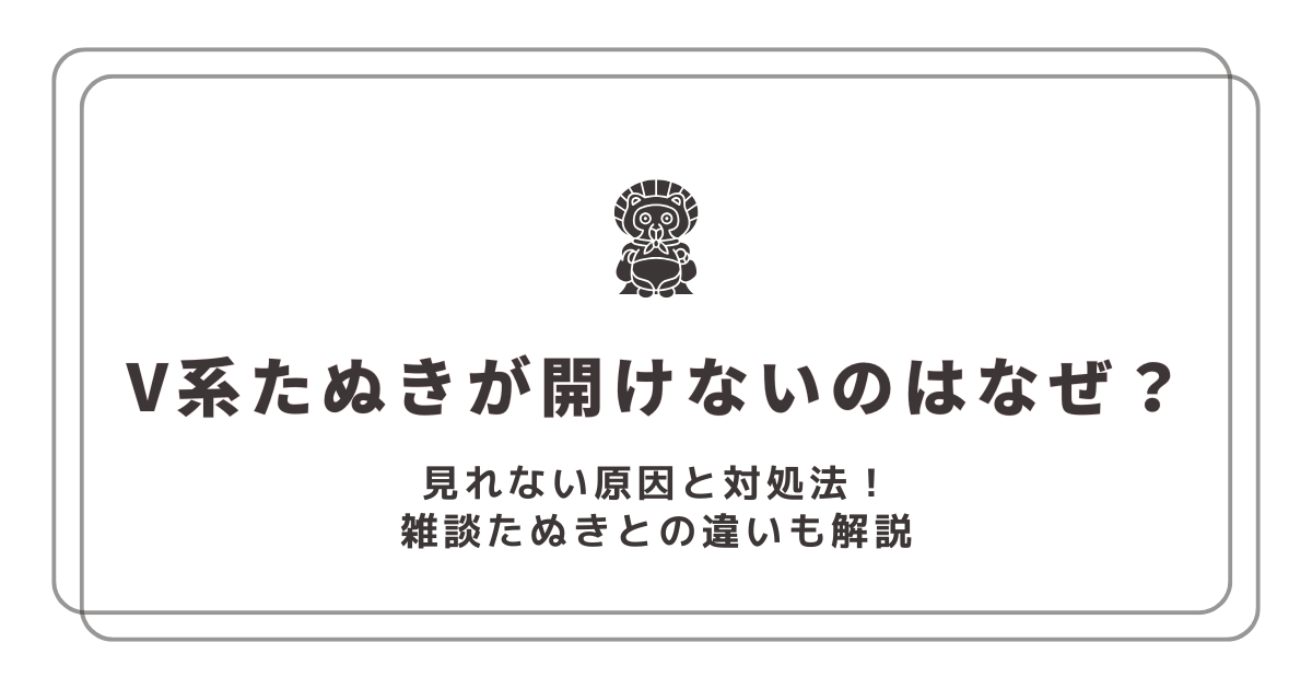 この記事では、V系たぬきが見れない原因と対処法をわかりやすく解説しつつ、間違えやすい「雑談たぬき」との違いもまとめました。