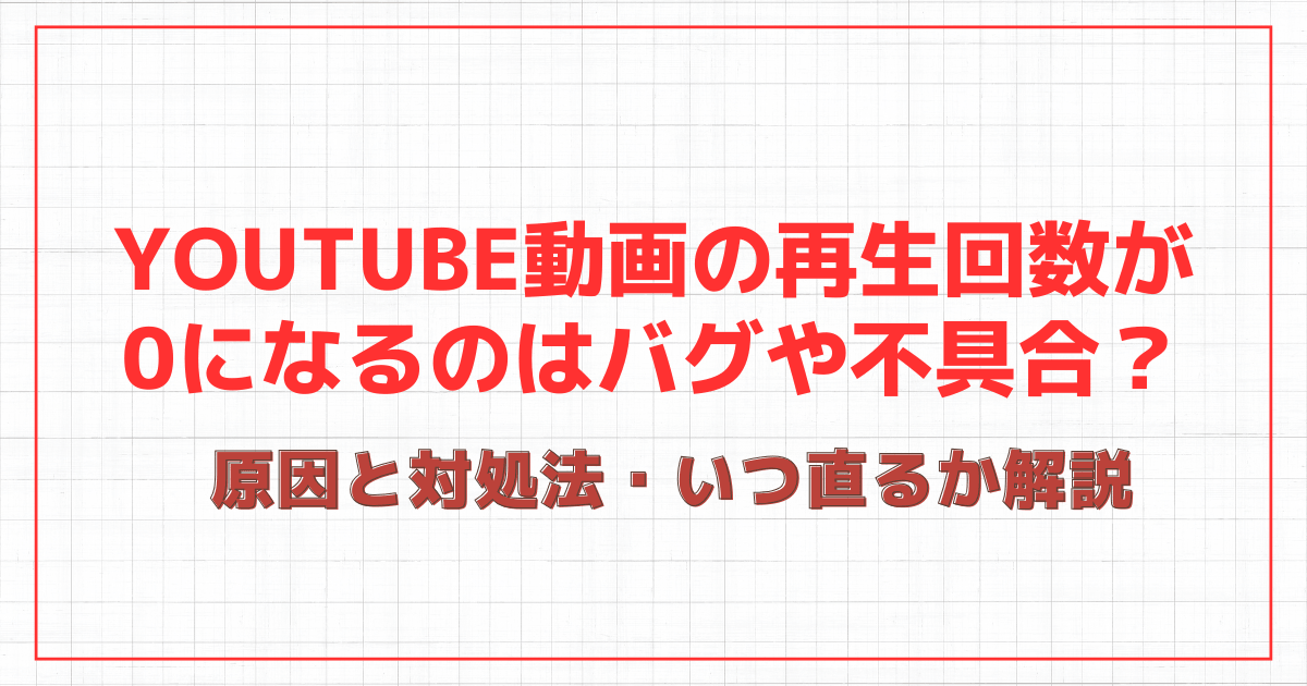 この記事では、YouTubeの再生回数が0になる原因や対処法、いつ直るのかについて、わかりやすく解説していきます。